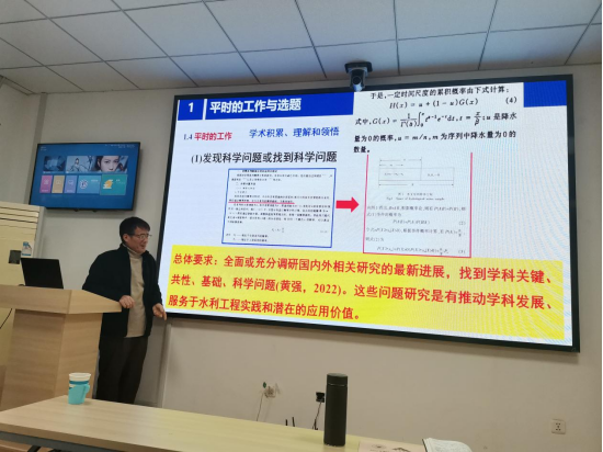 宋教授强调,申报者应基于自身的学术积累、理解和领悟,正确认识科学问题,善于从平时的科研和教学工作中发现并提炼出能够推动学科发展、能够服务于水利工程实践的、真正有价值的科学问题,积极开展前期研究,积累高水平学术成果,充分做好申报书撰写的前期工作。同时,宋教授结合自己多次申报及参与基金评审的经验,从申报书的选题、立项依据、研究目标与内容、研究方案、技术路线、创新点、预期成果等方面进行了详细讲解,并为申报者提出了许多实用的撰写建议。