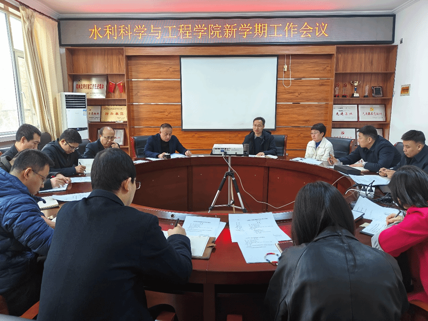 3月6日,学院在二层会议室召开新学期工作会议。领导班子,各系(中心)主任和党支部书记,各办公室负责人参加会议。院长张宽地主持会议。