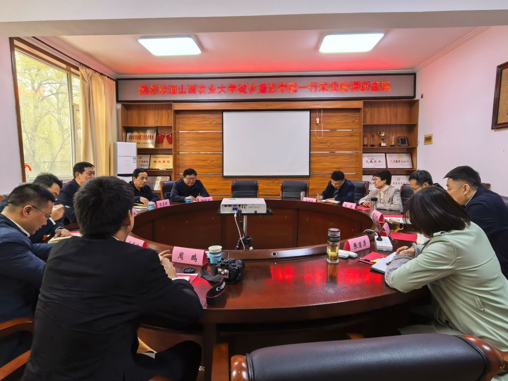 4月8日,山西农业大学城乡建设学院张鹏书记、段喜明院长一行到访尼斯集团官网开展调研座谈。尼斯集团官网院长张宽地主持座谈会,领导班子和相关人员参加会议。